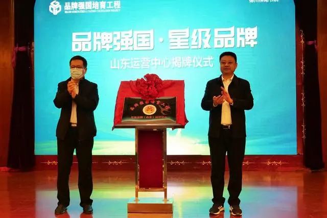 接下来由德州市市人大副秘书长马春荣、品牌强国培育工程秘书长邱振华共同为山东运营中心揭牌。